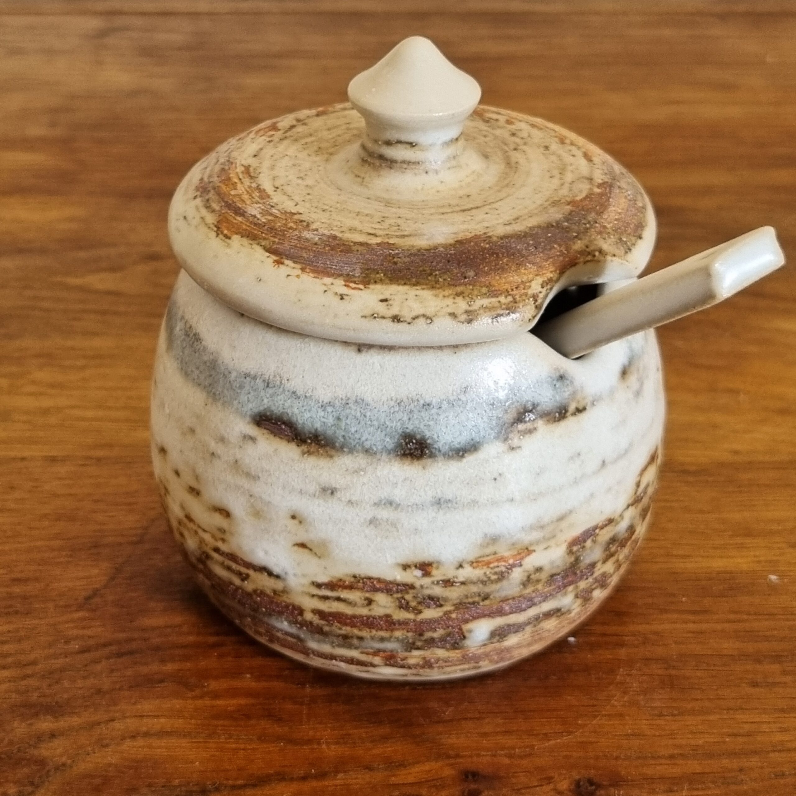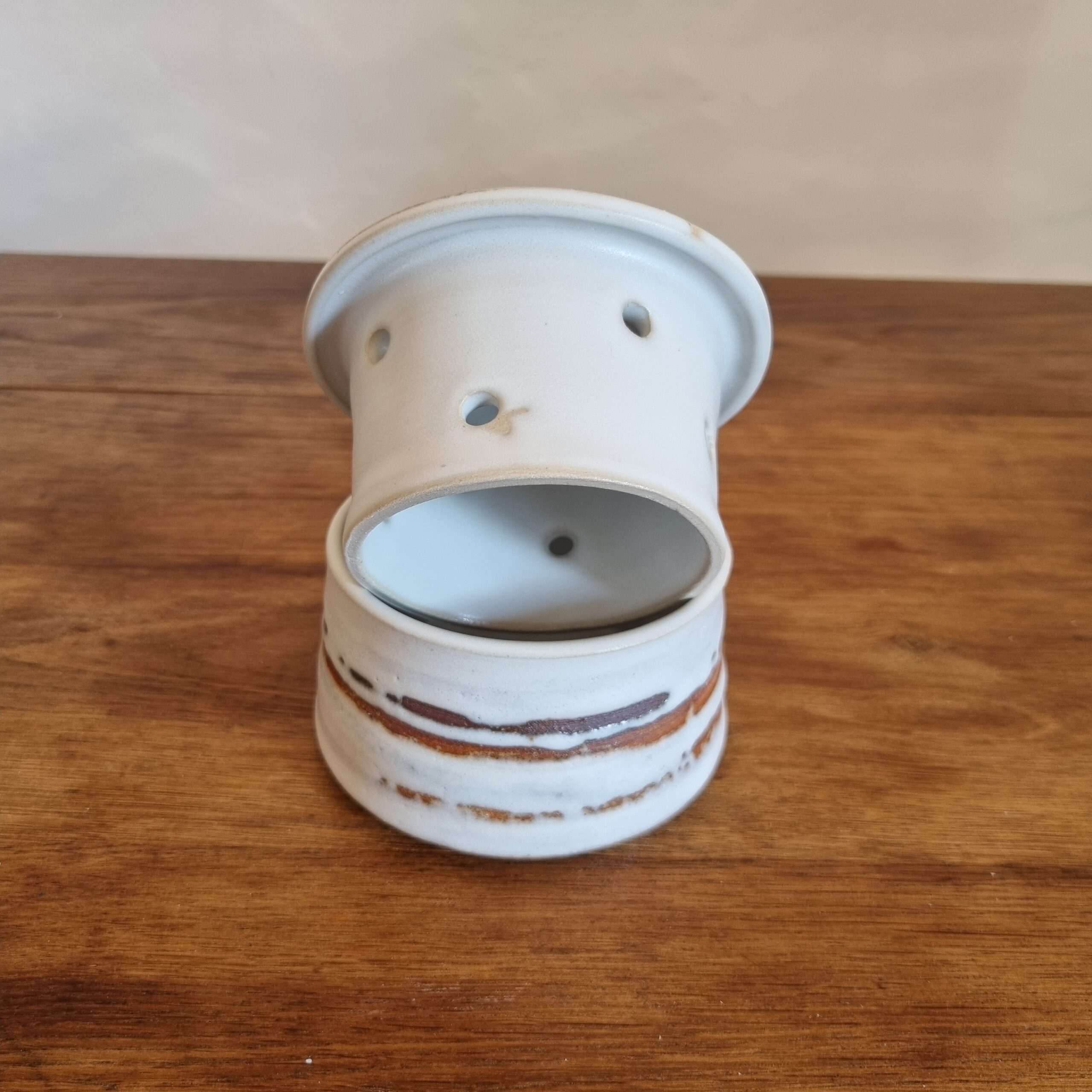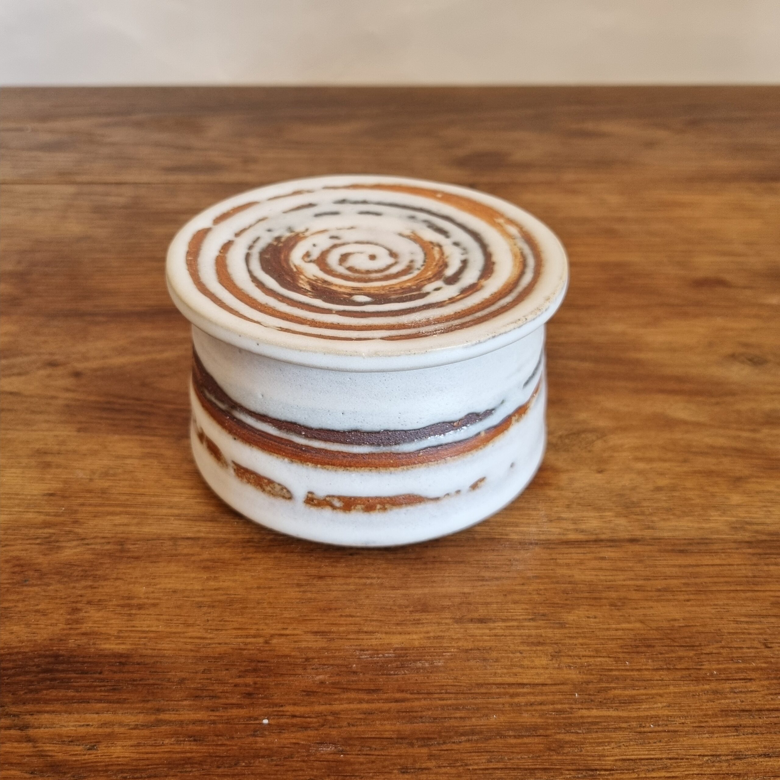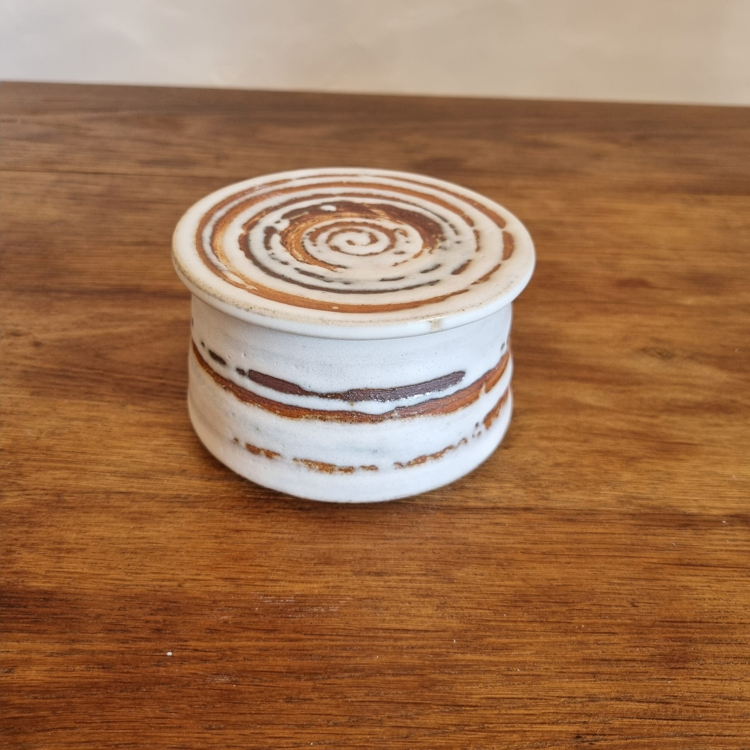 Façonné à la main, ce beurrier allie utilité et esthétique. Son émail artisanal, élaboré à partir de matières naturelles, révèle des nuances subtiles et uniques qui évoluent à la lumière. Inspiré par les textures organiques, il trouve facilement sa place sur une table ou dans une cuisine, apportant une touche douce et authentique au quotidien.